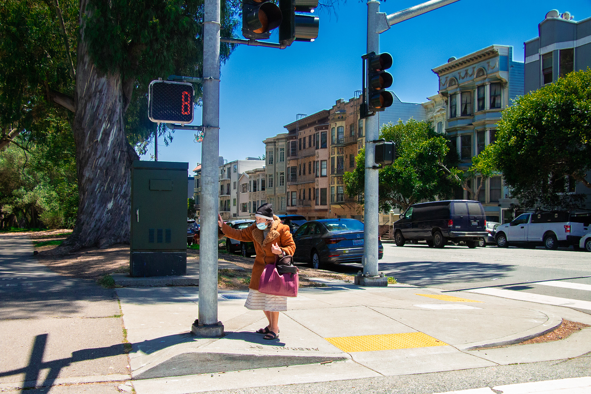 Tired Lady Crossing Street